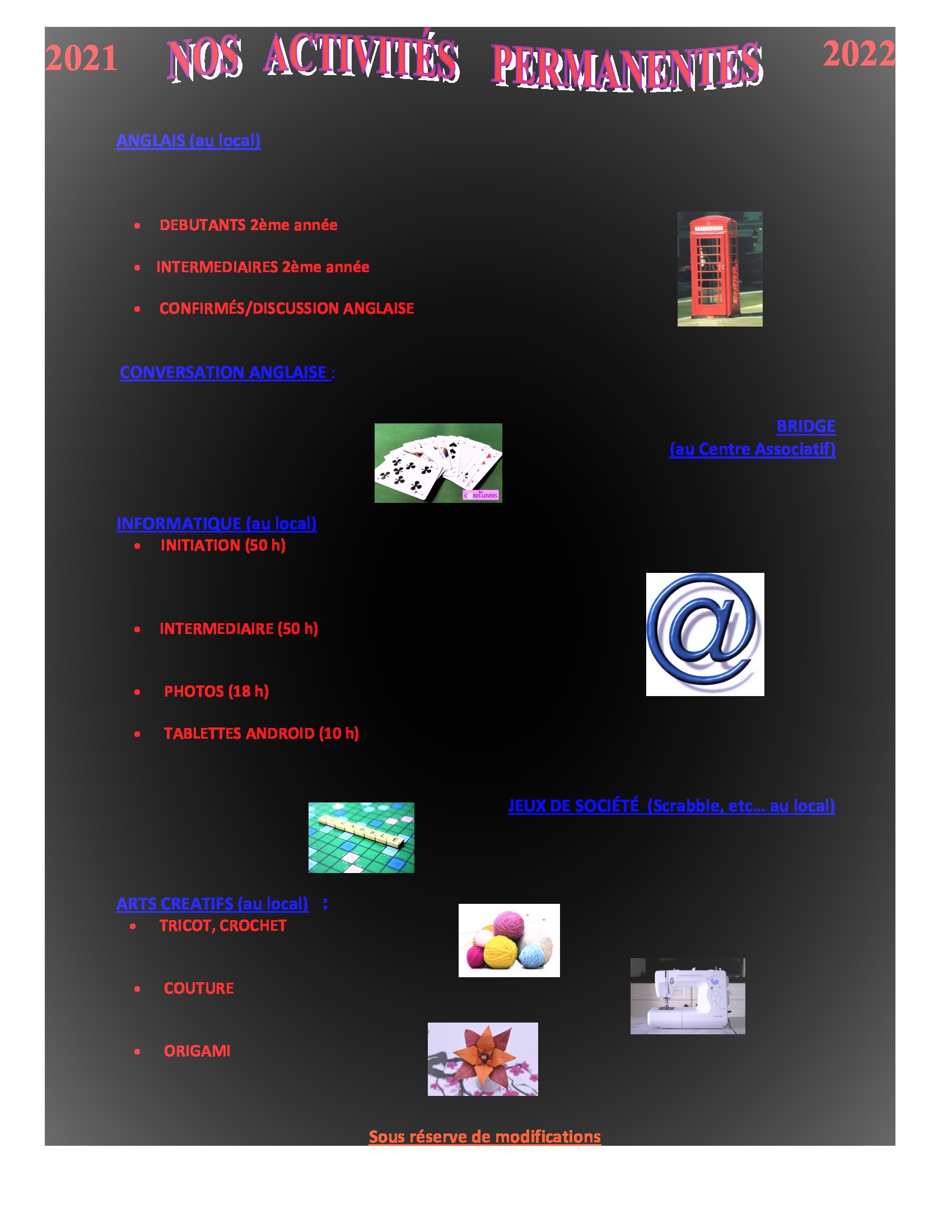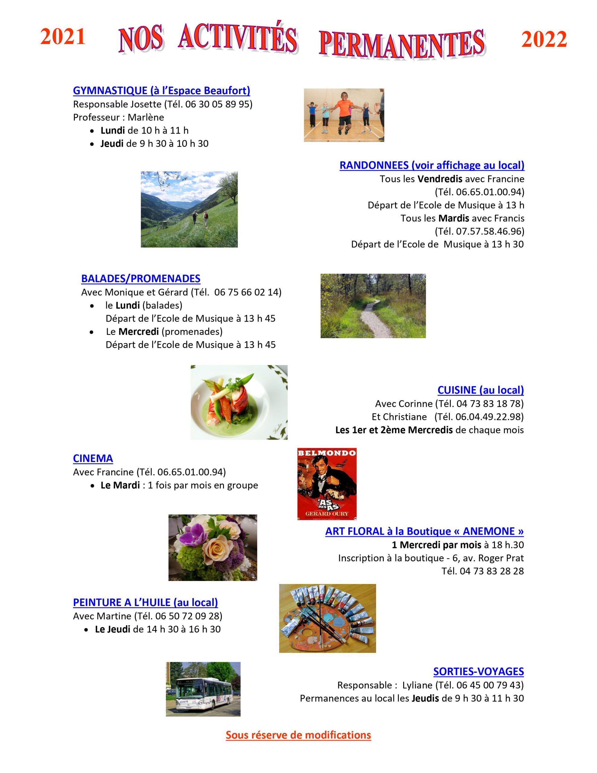 C’EST LA RENTREE C’EST LA RENTREE 20/08/2021 Pont-du-Chateau-Accueille Nous avons le plaisir de vous présenter le programme de nos activités permanentes 2021/2022 NOS BENEVOLES SE TIENDRONT A VOTRE DISPOSITION LORS DU FORUM DES ASSOCIATIONS QUI SE TIENDRA LE: SAMEDI 4 SEPTEMBRE 2021 SALLE POLYVALENTE