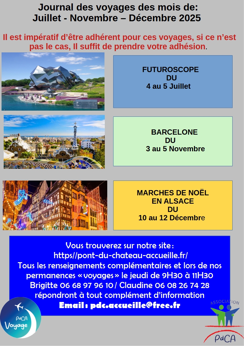 SORTIES (NOUS VOUS PRESENTONS NOS VOYAGES POUR 2026) SORTIES (NOUS VOUS PRESENTONS NOS VOYAGES POUR 2026) UNE ERREUR DANS LE NUMERO DE TELEPHONE DE BRIGITTE. MERCI DE NOTER LE : 06 68 97 96 10 AVEC TOUTES NOS EXCUSES.… 2026 UNE ERREUR DANS LE NUMERO DE TELEPHONE DE BRIGITTE. MERCI DE NOTER LE : 06 68 97 96 10 AVEC TOUTES NOS EXCUSES.…