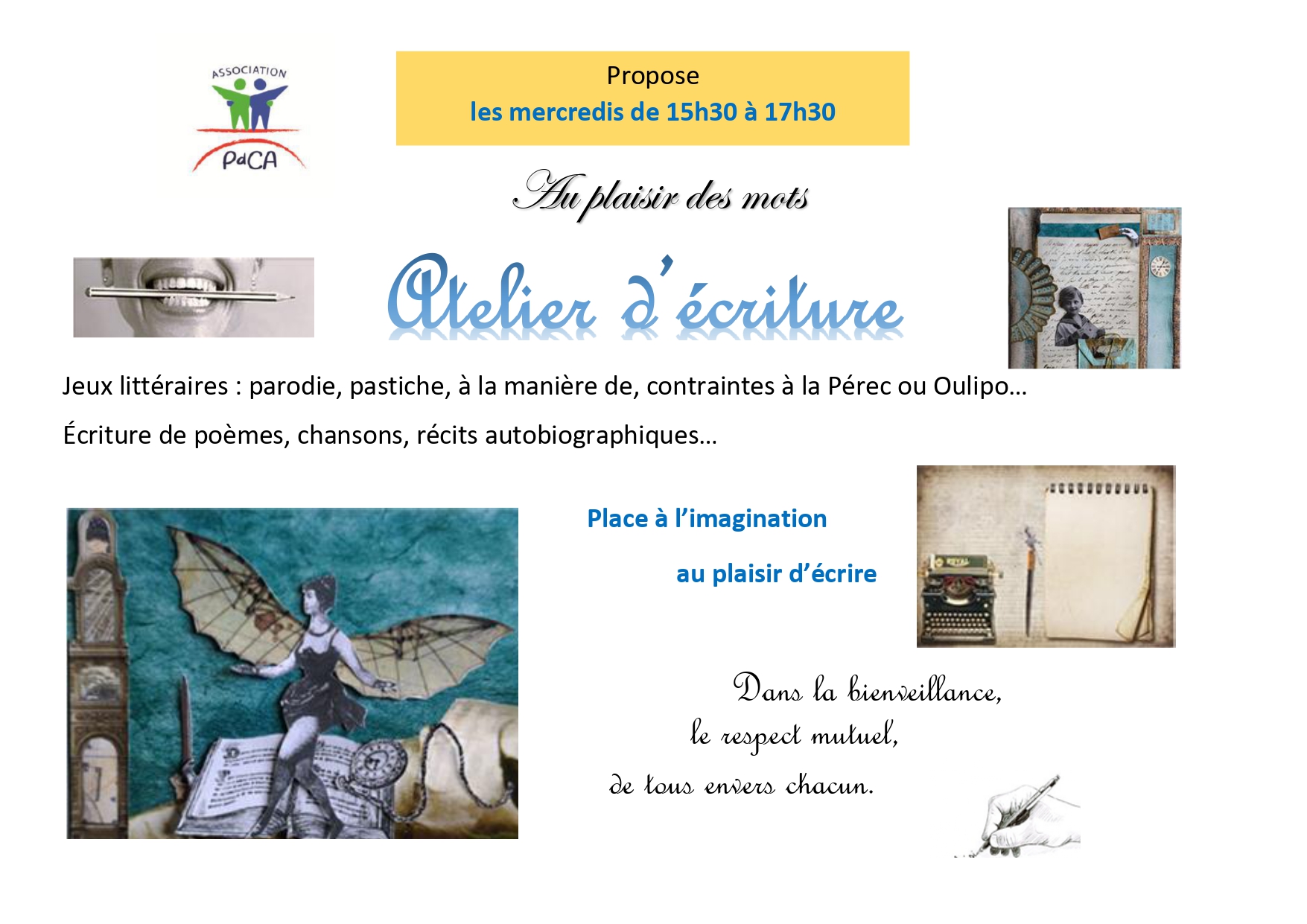 ATELIER ECRITURE (Au plaisir des mots) ATELIER ECRITURE (Au plaisir des mots) 22/08/2024 Pont-du-Chateau-Accueille