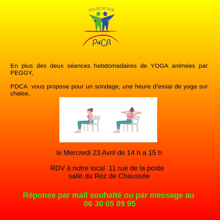 SONDAGE PROPOSITION YOGA SUR CHAISE SONDAGE PROPOSITION YOGA SUR CHAISE 02/04/2025 Pont-du-Chateau-Accueille