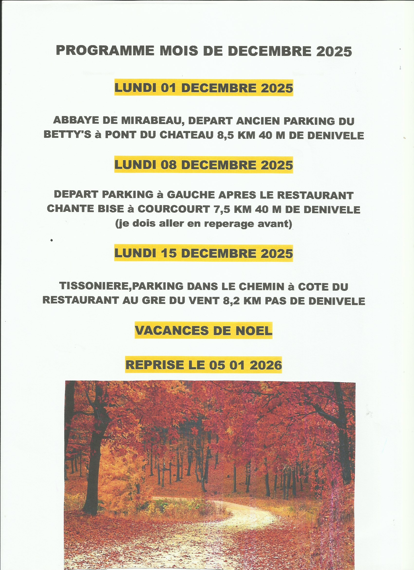 PLANNING DES RANDONNEES/BALADES
